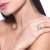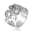 Precioso anillo en baño de oro blanco de 18 quilates, diseño de círculos engarzados, con incrustaciones de cristales blancos.