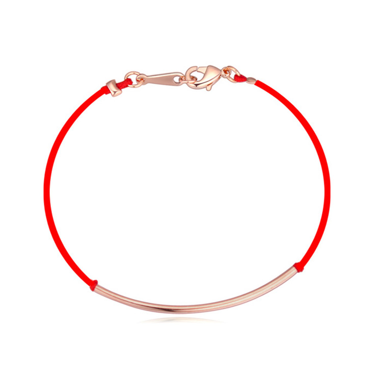 Linda pulsera, con detalles de baño de oro rosa de 18 quilates y correa de hilo reforzado en color rojo.