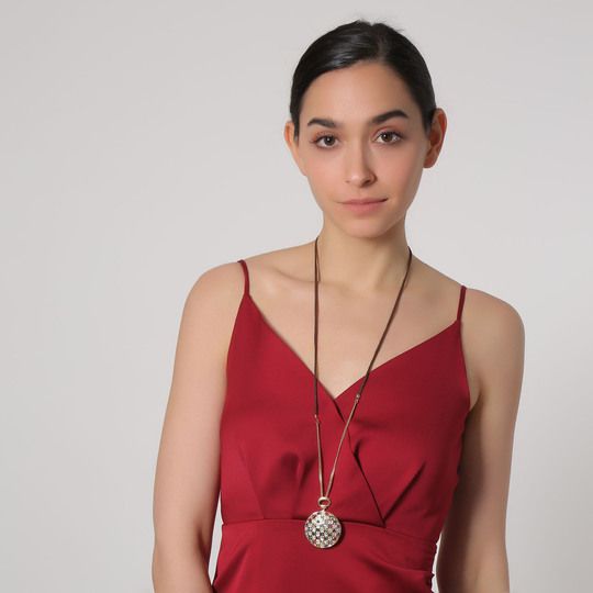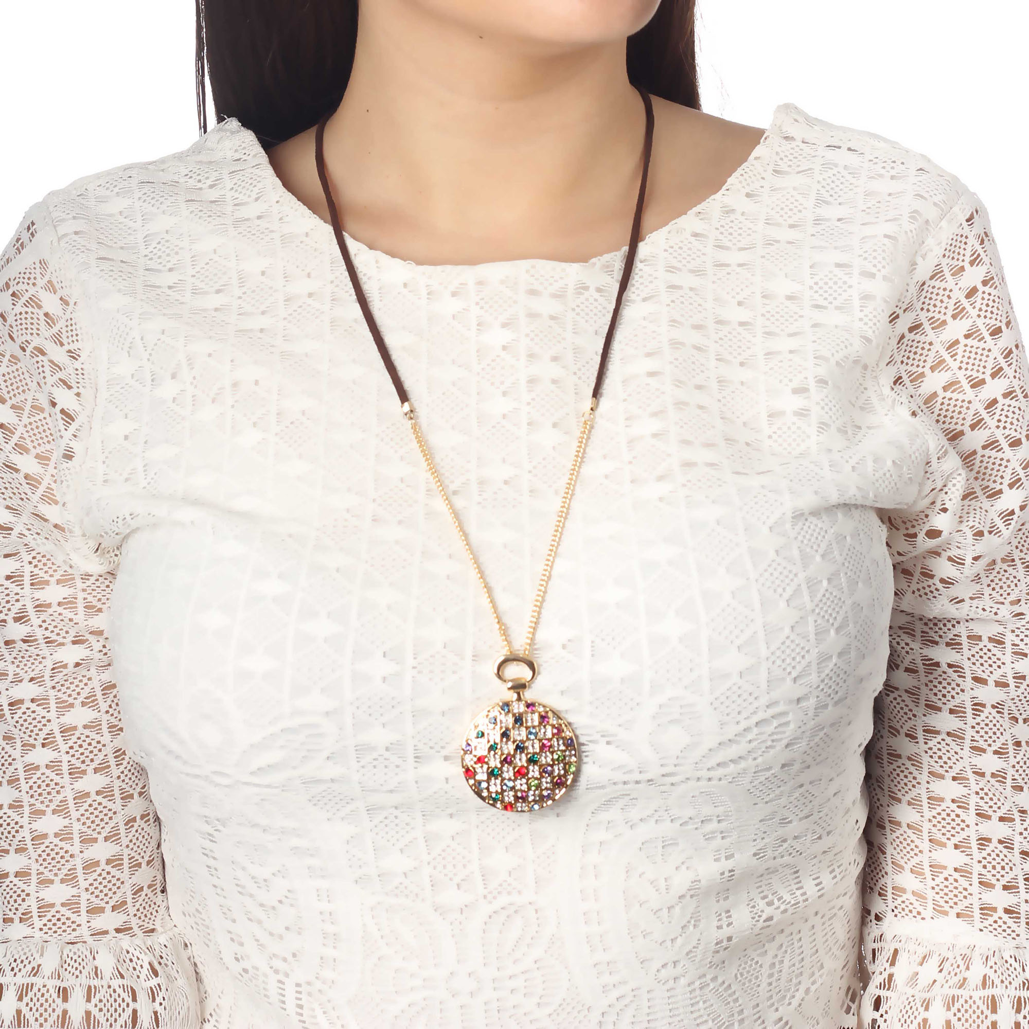 Collar en baño de oro amarillo de 18 quilates, diseño de círculo con cristales multicolor.