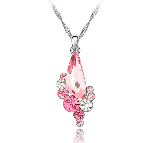 Dije con cadena en baño de oro blanco de 18 quilates, diseño asimétrico, con incrustación de cristales en color rosa y blanco.