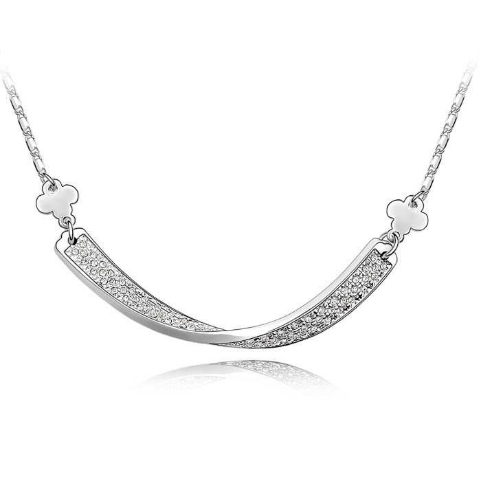 Precioso Collar en baño de oro blanco de 18 quilates, Elegante diseño con incrustación de cristales en color blanco.