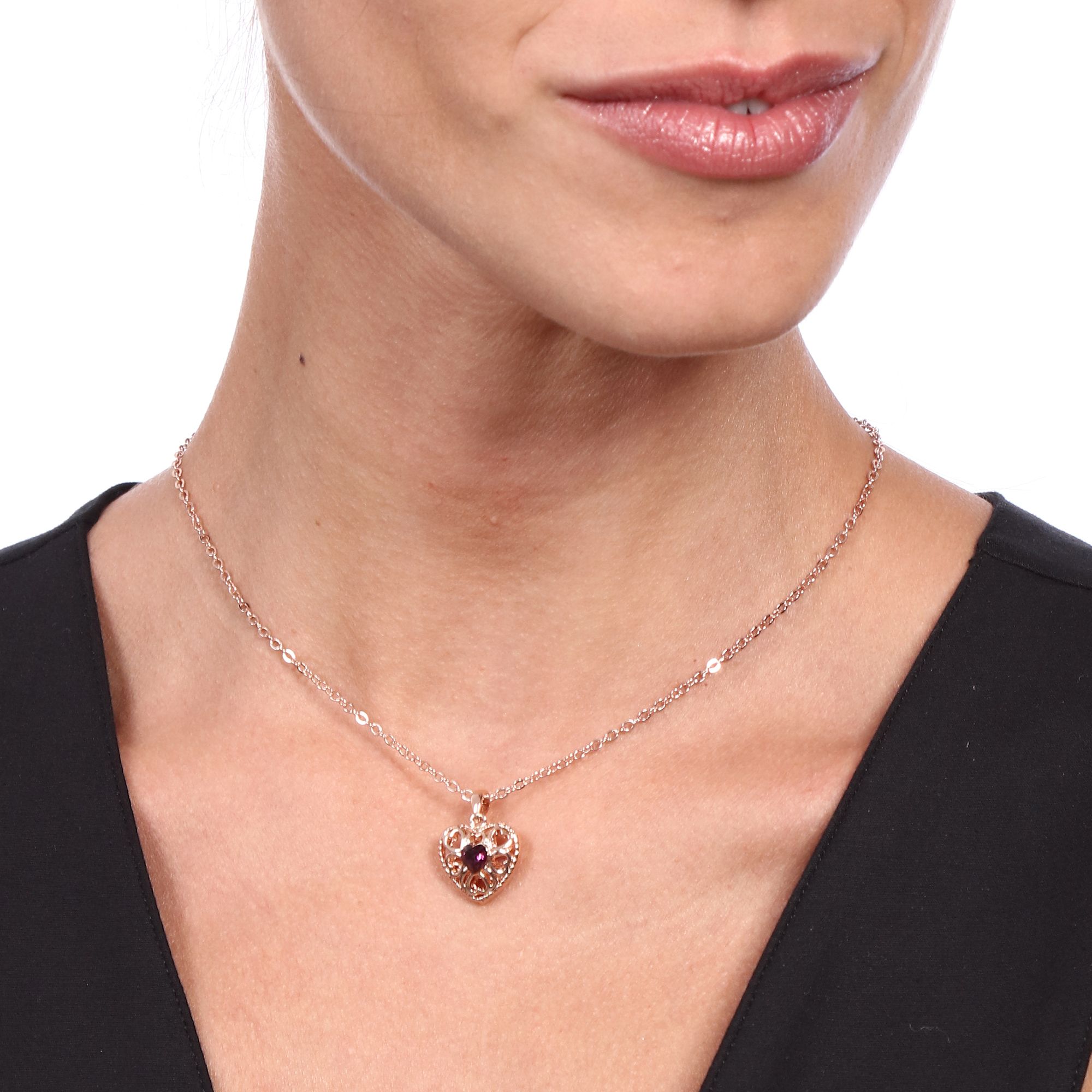 Hermoso Dije en baño de oro rosa de 18 quilates, diseño de corazón con incrustación de cristal en color morado. Fabricado en una estructura de aleación de platino con rodio sin níquel 1. joyería Hipoalergénica. 2. Incluye cajita de joyería. 3. Garantía de 30 días por defectos de fabrica.