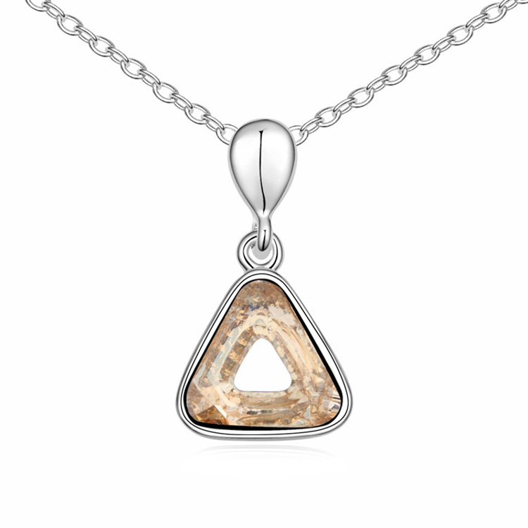Lindo dije en baño de oro blanco de 18 quilates, diseño de triangulo con cristal en color ambar.