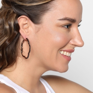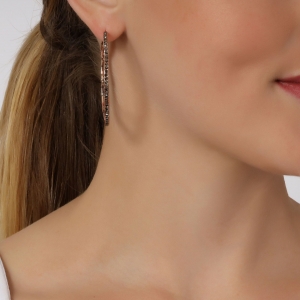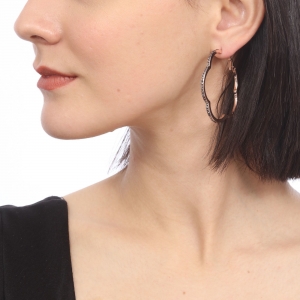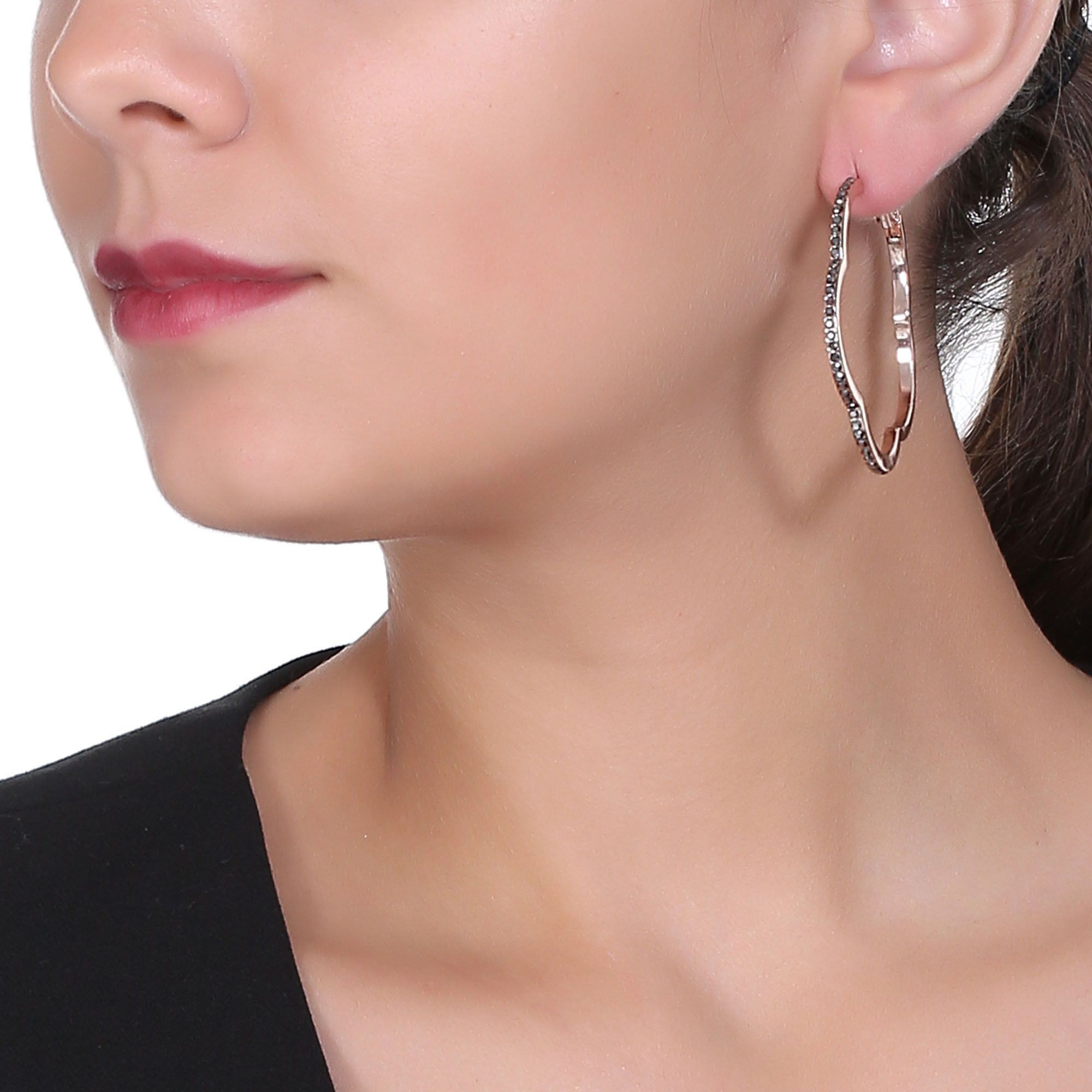 Preciosas arracadas, en baño de oro rosa de 18 quilates, diseño de flor, con incrustaciones de cristales gris oxford.