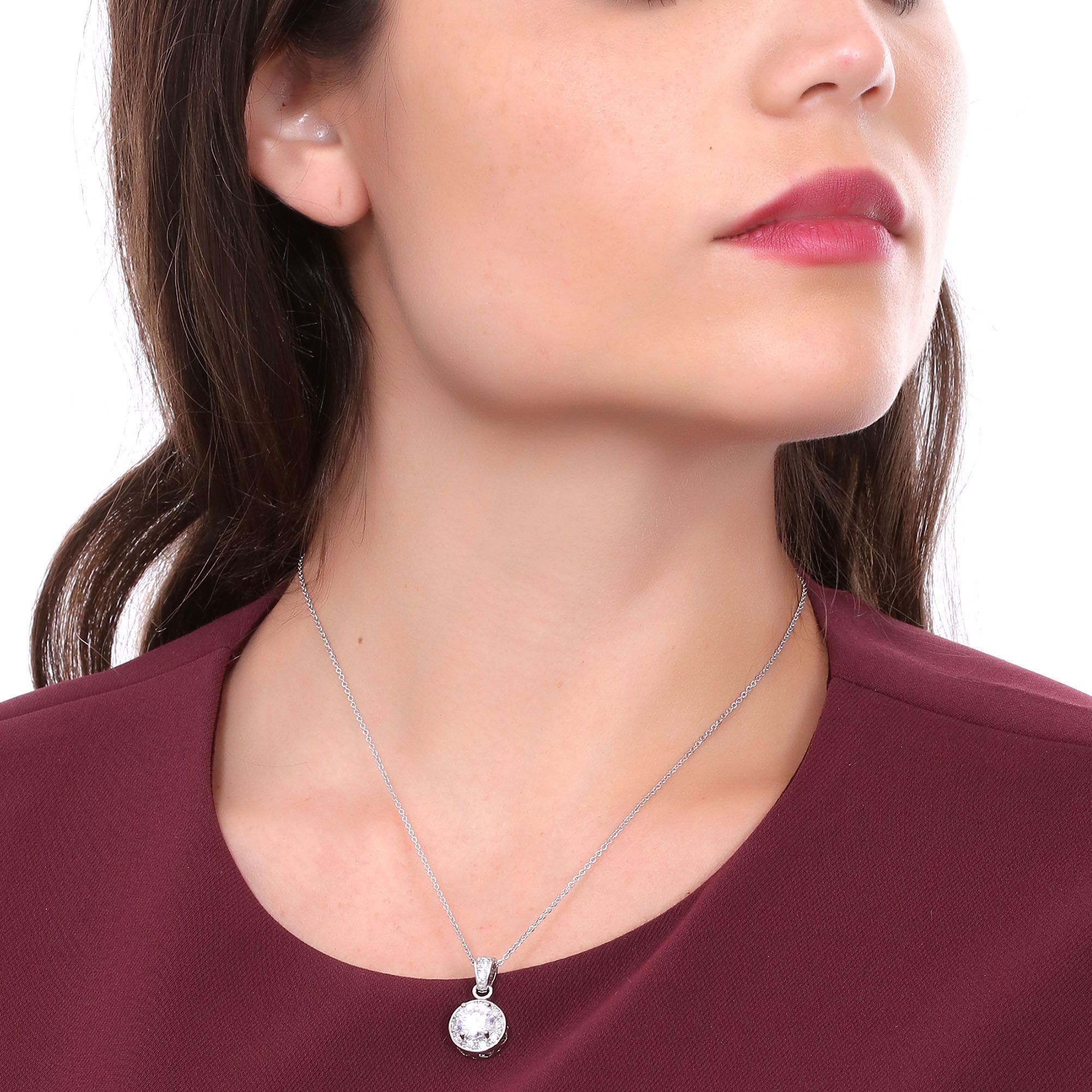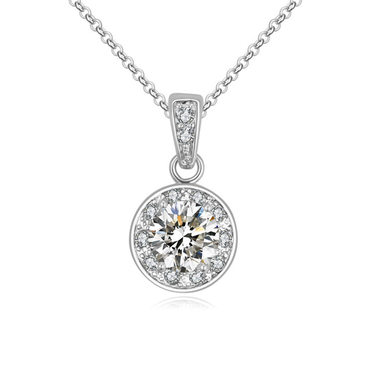 Precioso Dije en baño de oro blanco de 18 quilates, diseño de círculo con incrustación de cristales en color blanco. Fabricado en una estructura de aleación de platino con rodio sin níquel 1. joyería Hipoalergénica. 2. Incluye cajita de joyería. 3. Garantía de 30 días por defectos de fabrica.