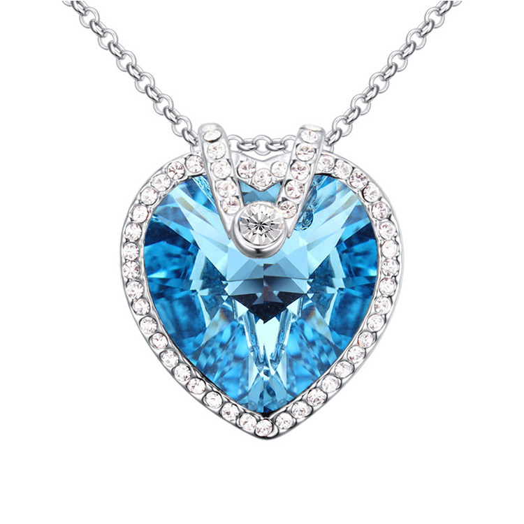 Precioso Dije en baño de oro blanco de 18 quilates, diseño de corazón con incrustación de cristales en color blanco y azul. Fabricado en una estructura de aleación de platino con rodio sin níquel 1. joyería Hipoalergénica. 2. Incluye cajita de joyería. 3. Garantía de 30 días por defectos de fabrica.