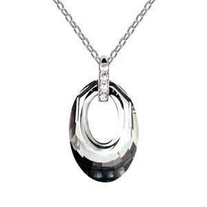 Precioso Dije en baño de oro blanco de 18 quilates, elagante diseño con cristales en color blanco y negro.