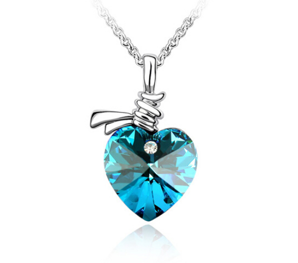 Dije con cadena en baño de oro blanco de 18 quilates, diseño de corazón con incrustación de cristales en color azul y blanco. Fabricado en una estructura de aleación de platino con rodio sin níquel 1. joyería Hipoalergénica. 2. Incluye cajita de joyería. 3. Garantía de 30 días por defectos de fabrica.