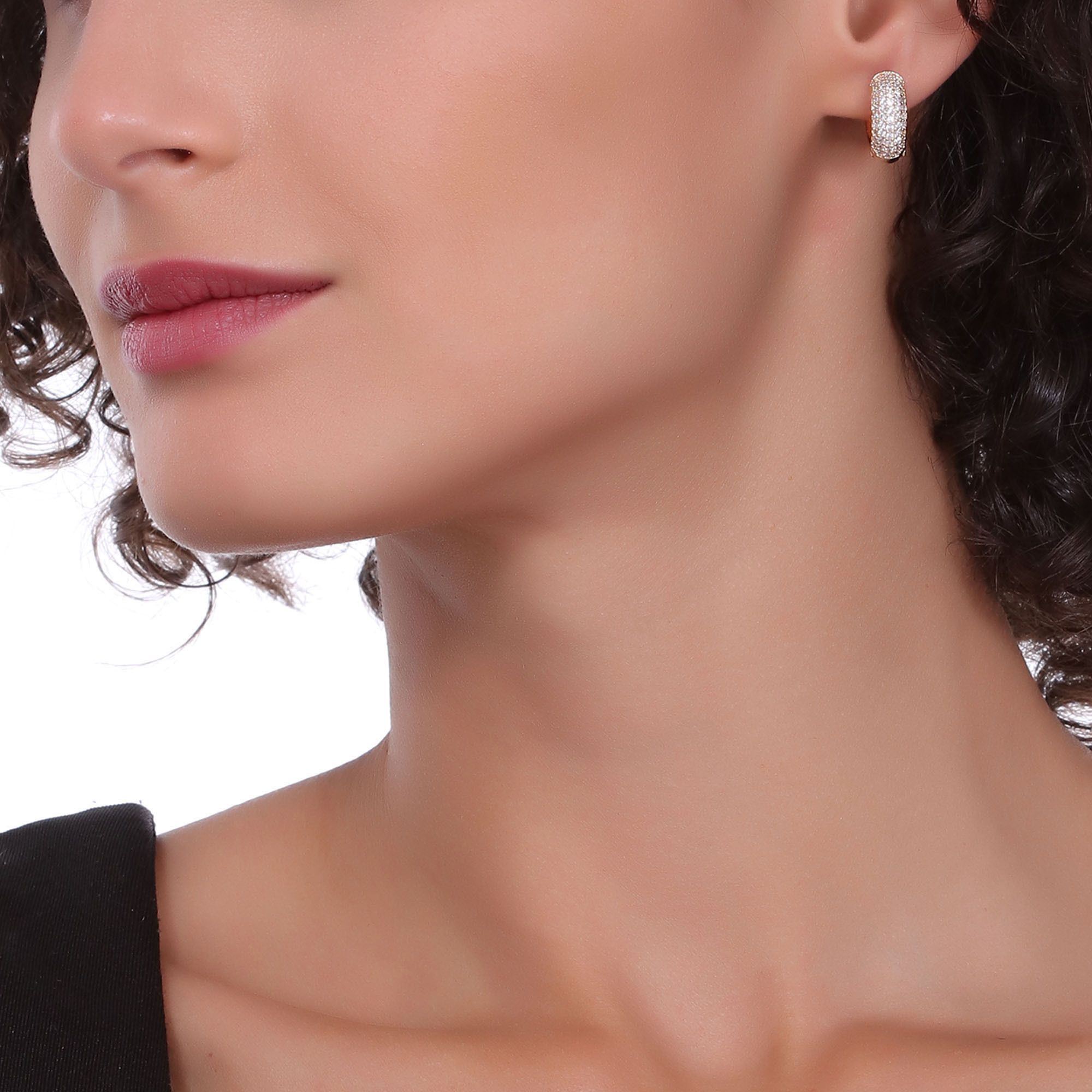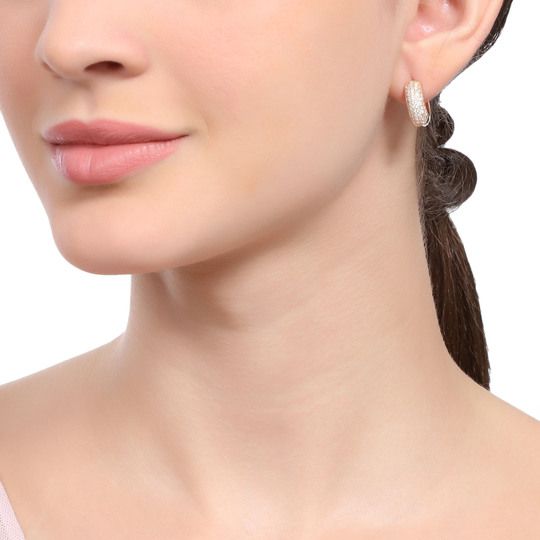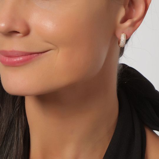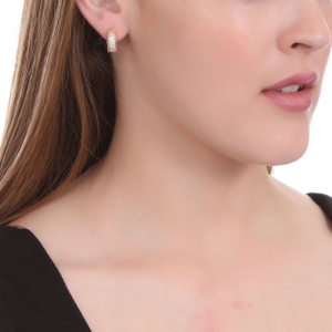 Preciosas arracadas, en baño de oro amarillo de 18 quilates, elegante diseño, con incrustaciones de cristales en color blanco.
