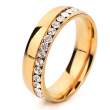 Precioso anillo en acero inoxidable, elegante diseño, estilo ranurado, con incrustaciones de cristales en color blanco.