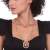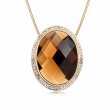 Collar en baño de oro amarillo de 18 quilates, diseño ovalado con cristal color ámbar e incrustaciones de cristales blancos.