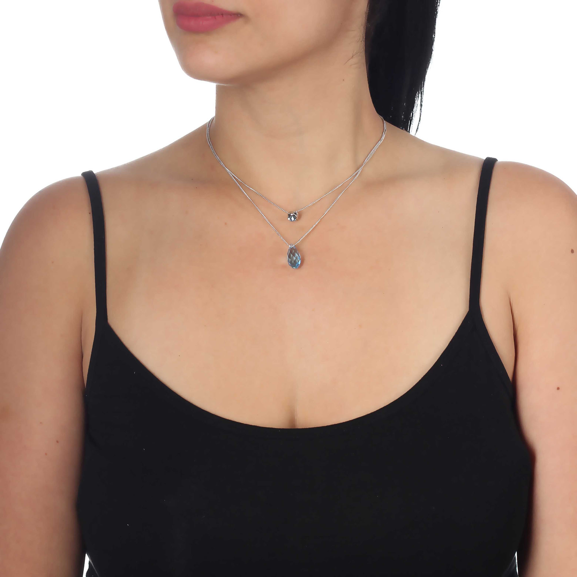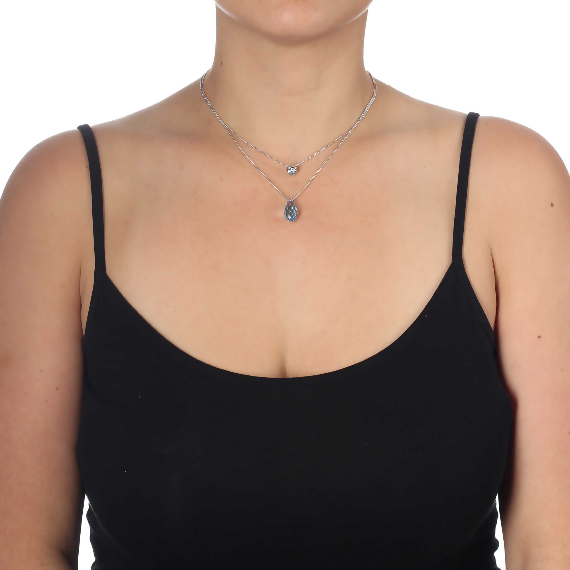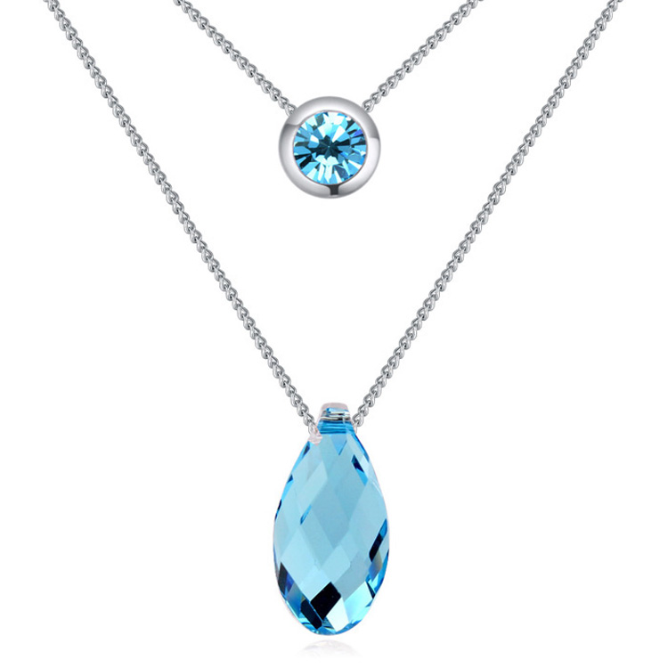 Precioso Dije doble en baño de oro blanco de 18 quilates, diseño de gota con incrustación de cristales en color azul. Fabricado en una estructura de aleación de platino con rodio sin níquel 1. joyería Hipoalergénica. 2. Incluye cajita de joyería. 3. Garantía de 30 días por defectos de fabrica.