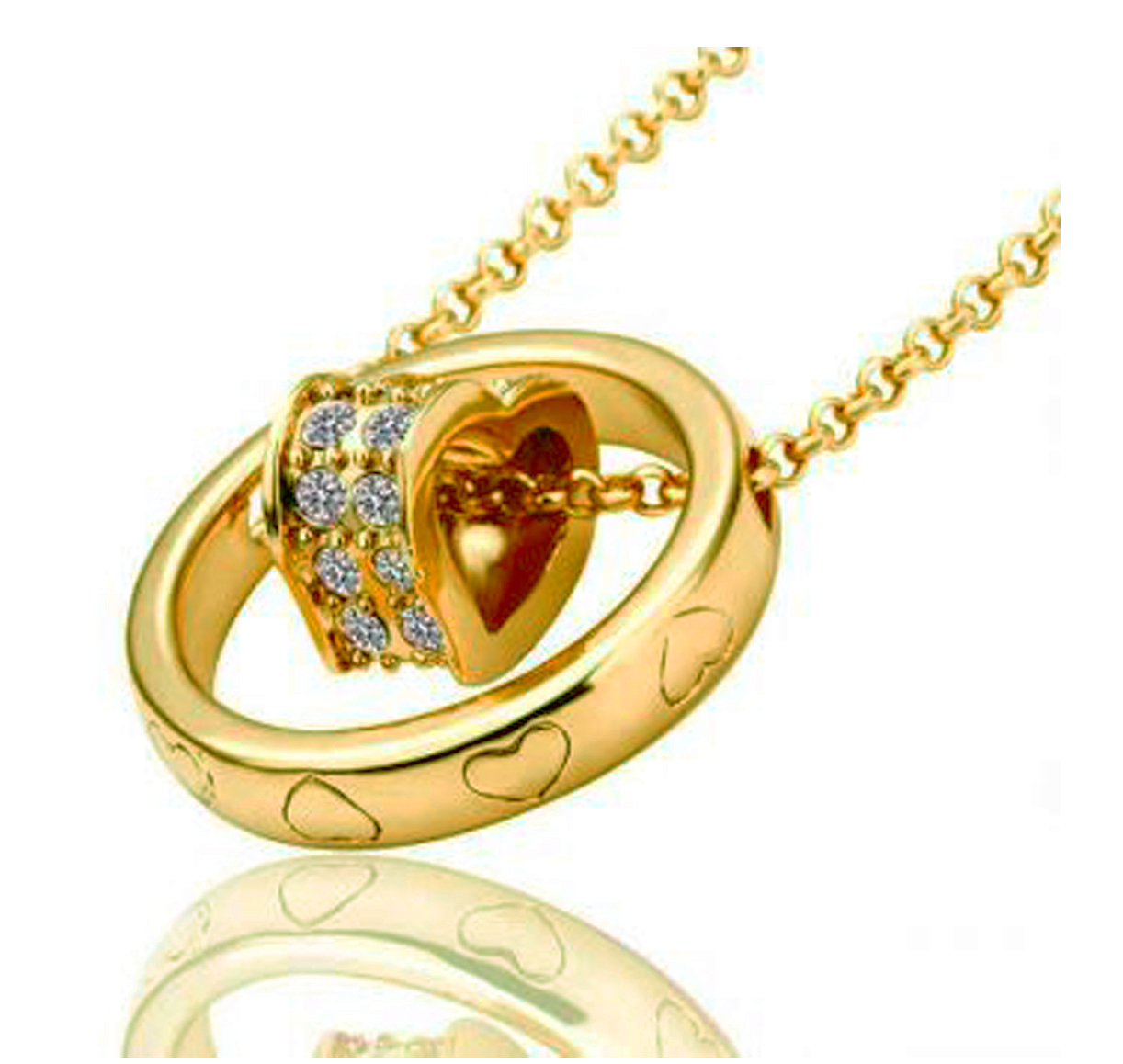 Tierno Dije con cadena en baño de oro amarillo de 18 quilates, Elegante diseño de corazón dentro del círculo con detalles de incrustación de cristales en color blanco. Fabricado en una estructura de aleación de platino con rodio sin níquel. 1. joyería Hipoalergénica. 2. Incluye cajita de joyería. 3. Garantía de 30 días por defectos de fabrica.