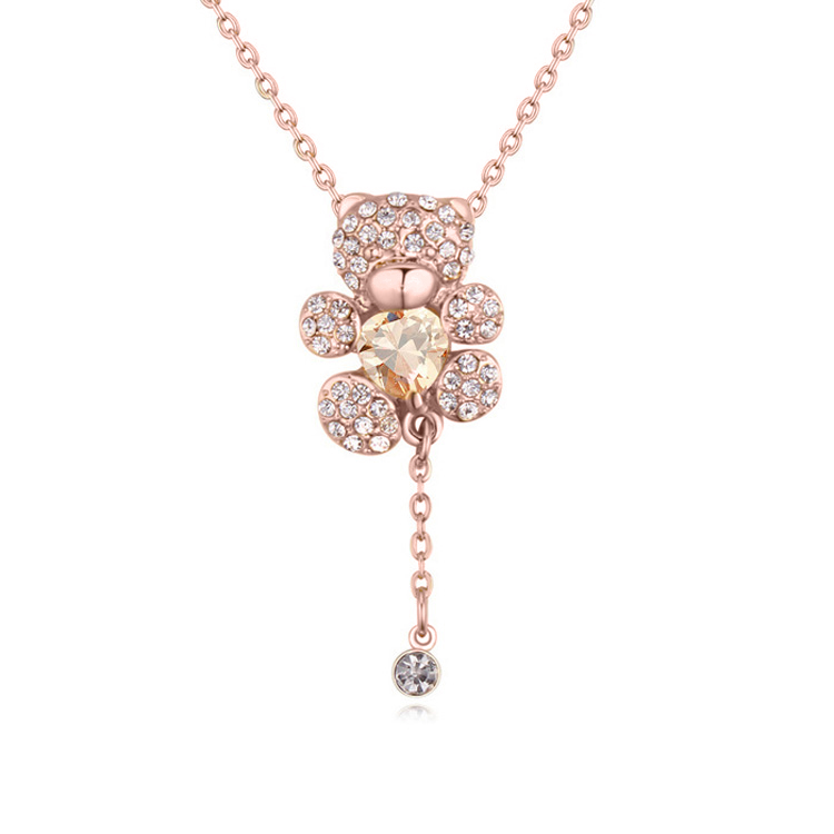 Dije en baño de oro rosa de 18 quilates, diseño de oso con cristales ámbar y blanco. Fabricado en una estructura de aleación de platino con rodio sin níquel 1. joyería Hipoalergénica. 2. Incluye cajita de joyería. 3. Garantía de 30 días por defectos de fabrica.