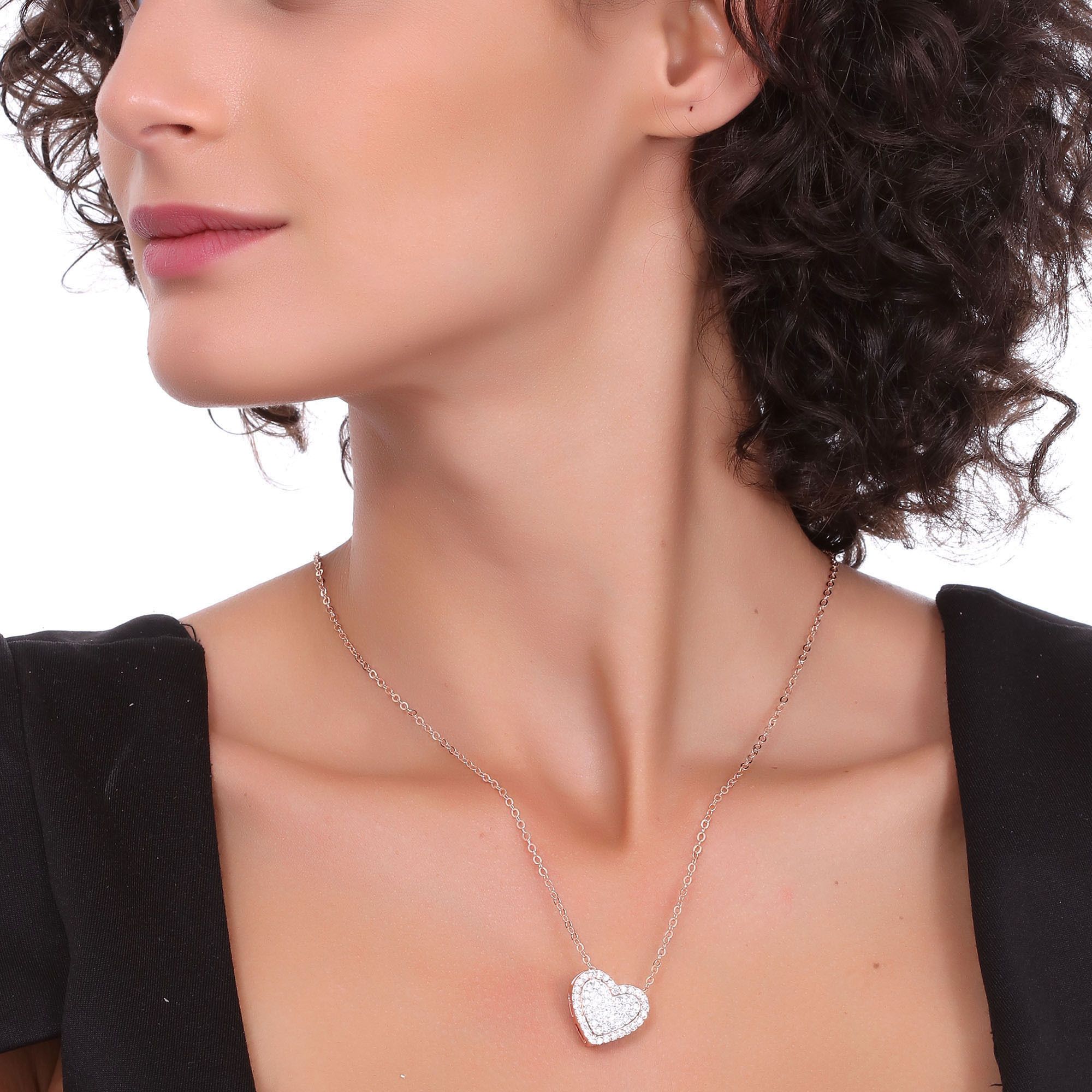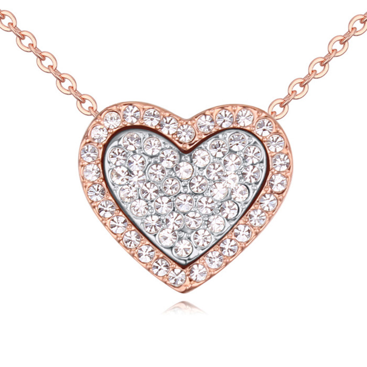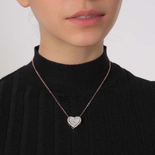 Hermoso Dije en baño de oro rosa y oro blanco de 18 quilates, diseño de corazón con incrustación de cristales en color blanco. Fabricado en una estructura de aleación de platino con rodio sin níquel 1. joyería Hipoalergénica. 2. Incluye cajita de joyería. 3. Garantía de 30 días por defectos de fabrica.