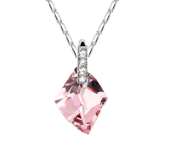 Dije con cadena en baño de oro blanco de 18 quilates, diseño con incrustación de cristales en color rosa. Fabricado en una estructura de aleación de platino con rodio sin níquel 1. joyería Hipoalergénica. 2. Incluye cajita de joyería. 3. Garantía de 30 días por defectos de fabrica.