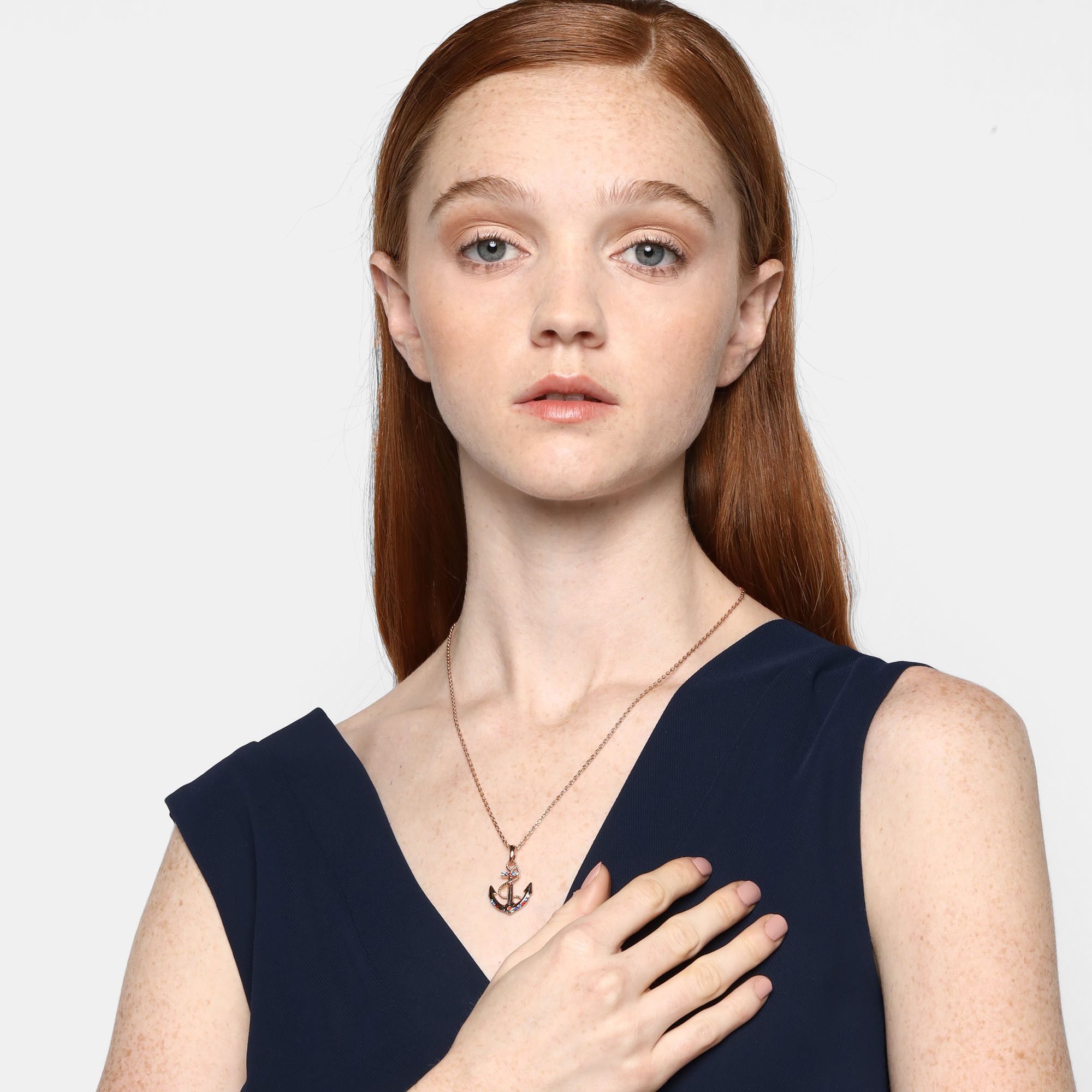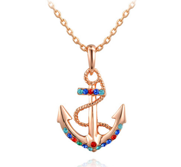 Lindo Dije en ba�o de oro rosa de 18 quilates, dise�o de ancla con incrustaci�n de cristales en colores.
