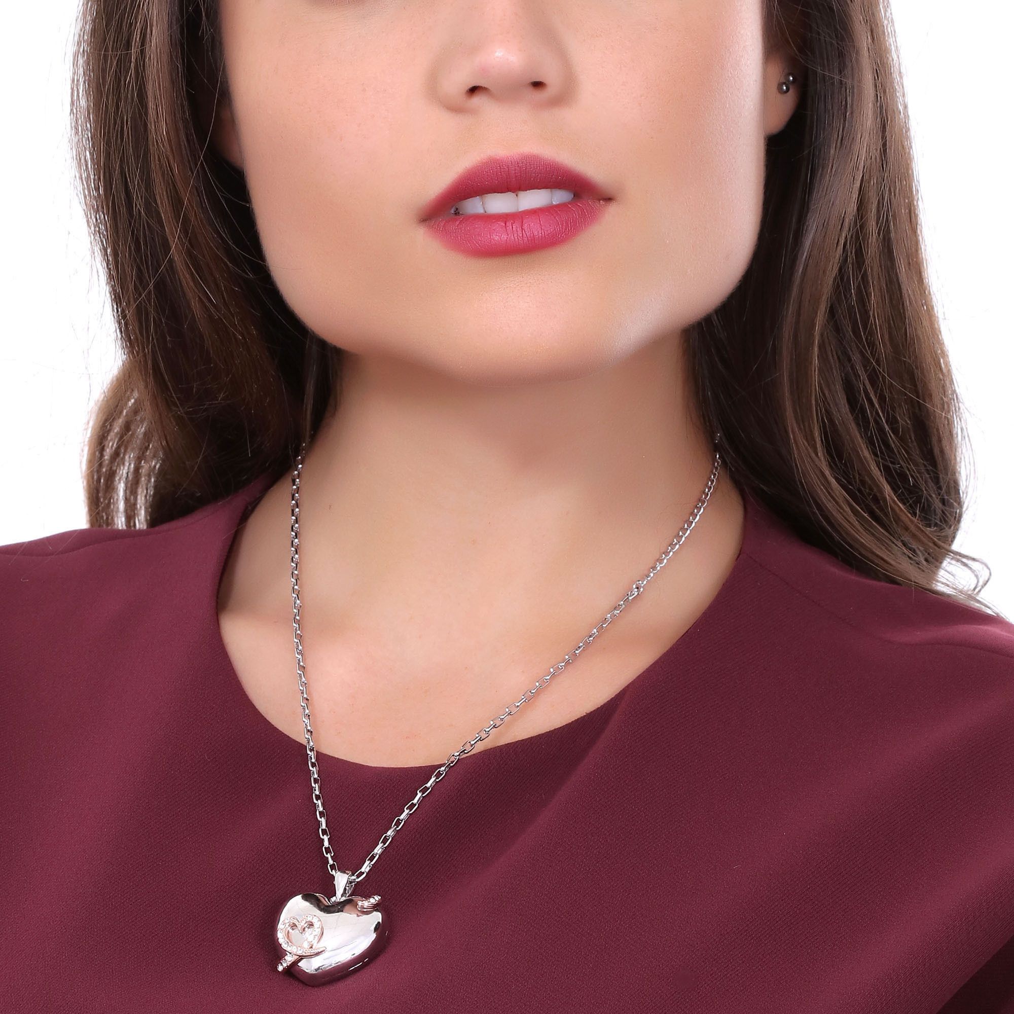Dije, en baño de oro blanco de 18 quilates, con diseño de corazón e incrustaciones de cristales blancos.