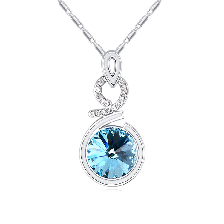 Dije con cadena en baño de oro blanco de 18 quilates, diseño con incrustación de cristales en color azul y blanco. Fabricado en una estructura de aleación de platino con rodio sin níquel 1. joyería Hipoalergénica. 2. Incluye cajita de joyería. 3. Garantía de 30 días por defectos de fabrica.