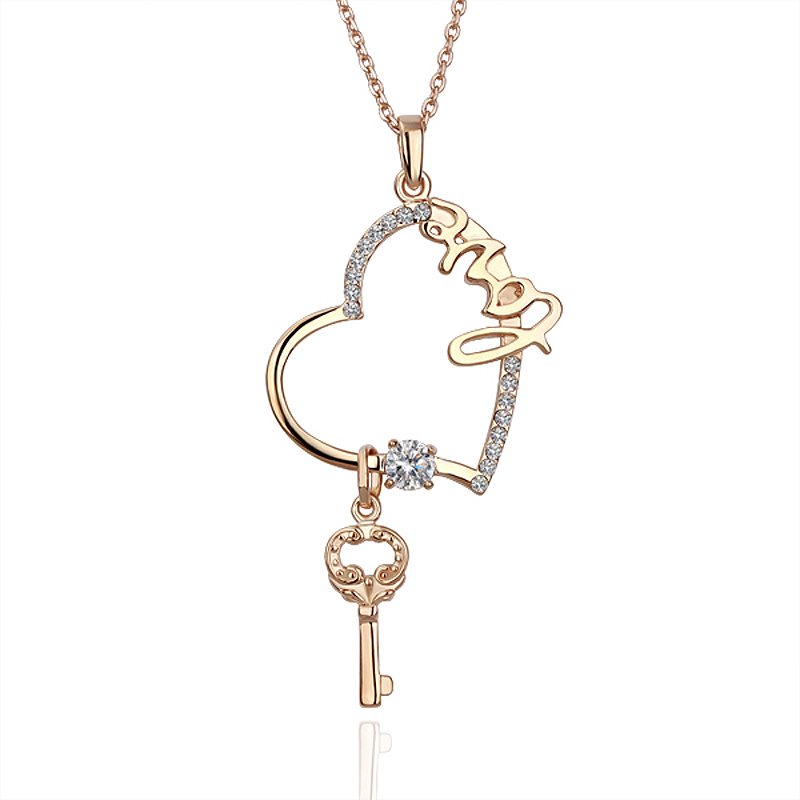 Tierno Dije con cadena en baño de oro rosa de 18 quilates, con diseño de corazón con palabra "Love" e incrustaciones de cristales Fabricado en una estructura de aleación de platino con rodio sin níquel. 1. joyería Hipoalergénica. 2. Incluye cajita de joyería. 3. Garantía de 30 días por defectos de fabrica.