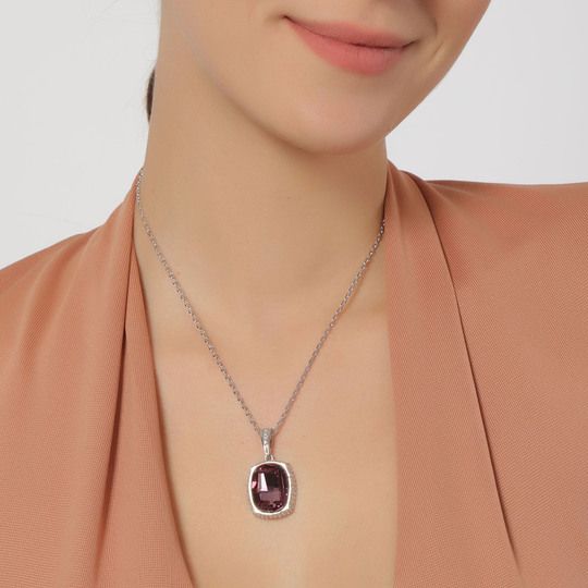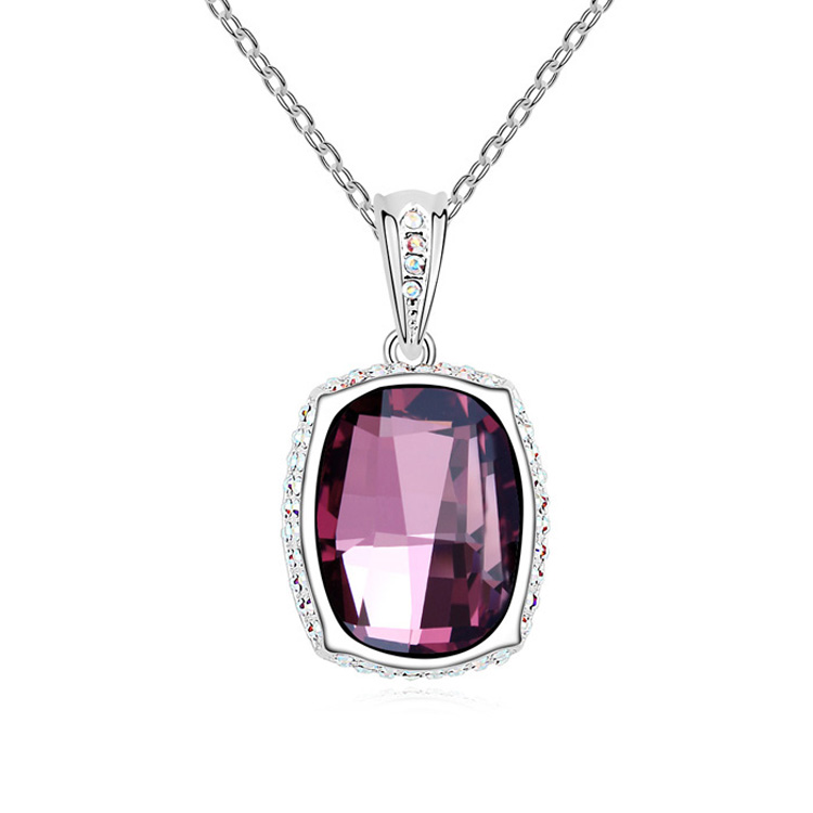 Elegante Dije en baño de oro blanco de 18 quilates, diseño de cuadro con incrustación de cristales en color blanco y morado. Fabricado en una estructura de aleación de platino con rodio sin níquel. 1. joyería Hipoalergénica. 2. Incluye cajita de joyería. 3. Garantía de 30 días por defectos de fabrica.