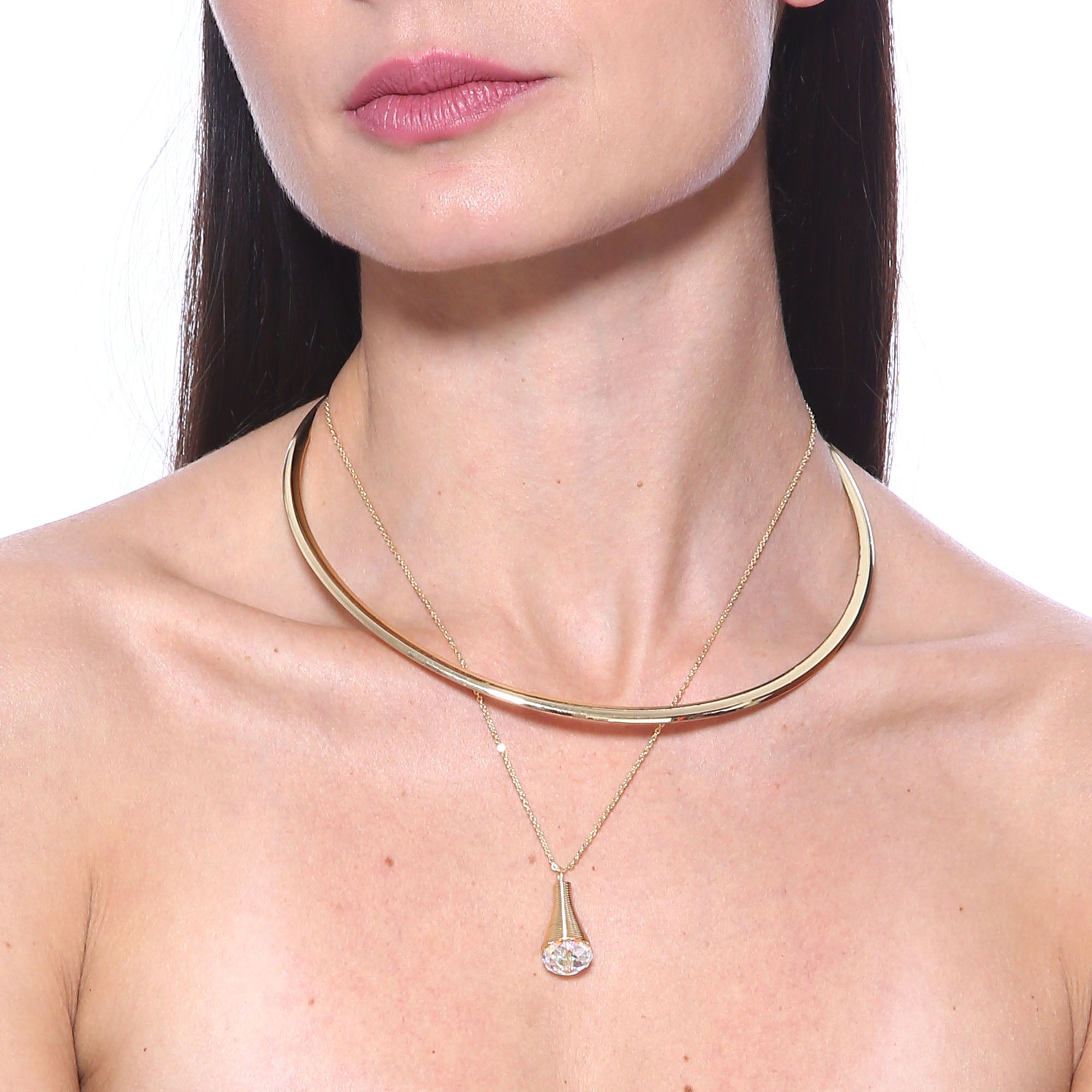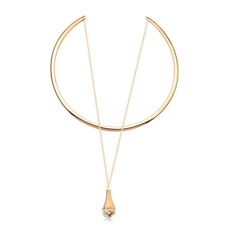 Hermoso Collar en baño de oro amarillo de 18 quilates, diseño de gota con cristales en color blanco. Fabricado en una estructura de aleación de platino con rodio sin níquel 1. joyería Hipoalergénica. 2. Incluye cajita de joyería. 3. Garantía de 30 días por defectos de fabrica.