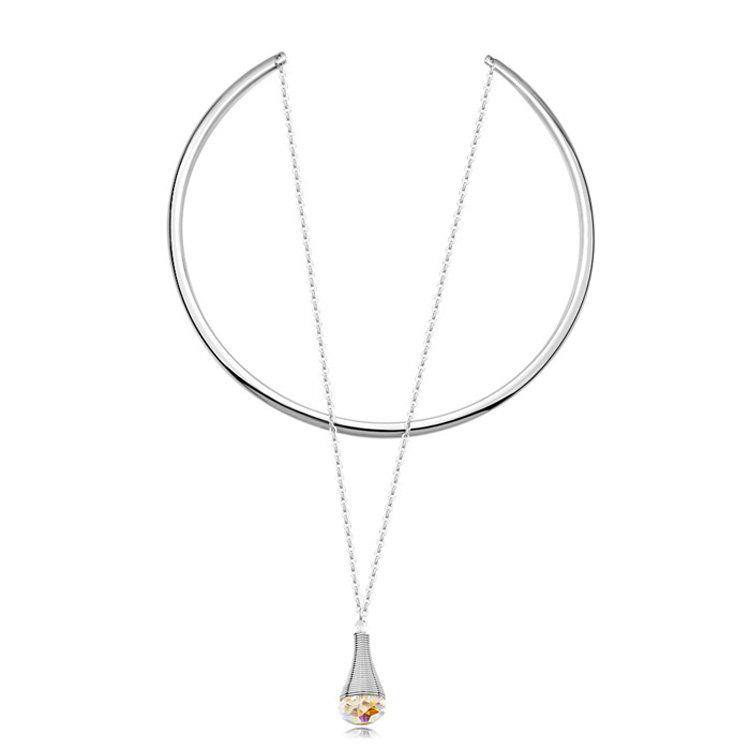 Hermoso Collar en baño de oro blanco de 18 quilates, diseño de gota con cristales en color tornasol. Fabricado en una estructura de aleación de platino con rodio sin níquel 1. joyería Hipoalergénica. 2. Incluye cajita de joyería. 3. Garantía de 30 días por defectos de fabrica.