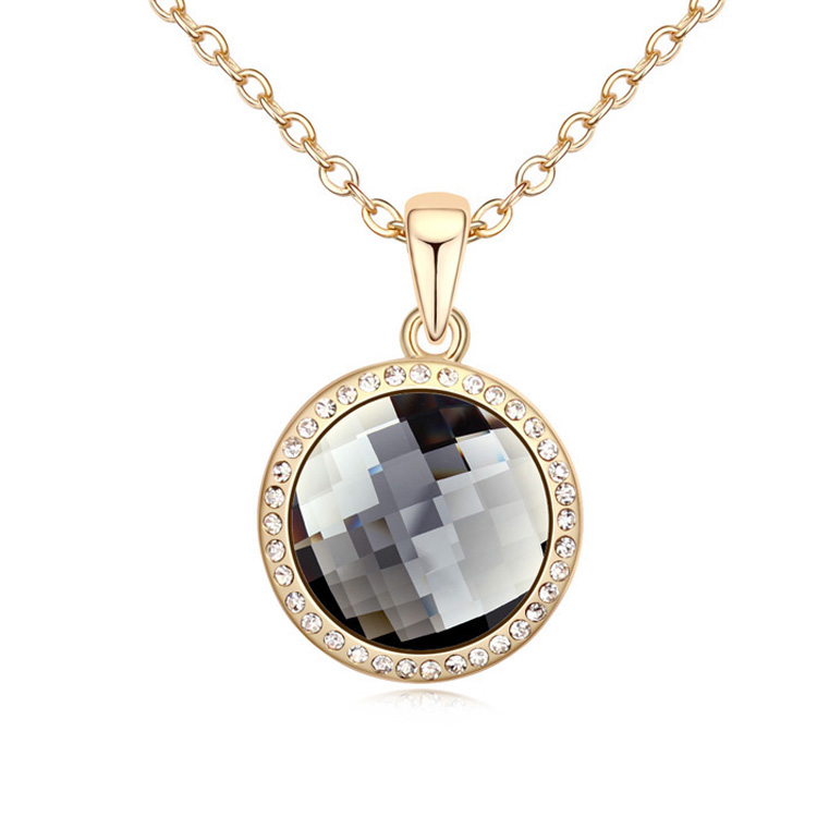 Precioso Dije en baño de oro blanco de 18 quilates, diseño de círculo con incrustación de cristales en color blanco y humo.
