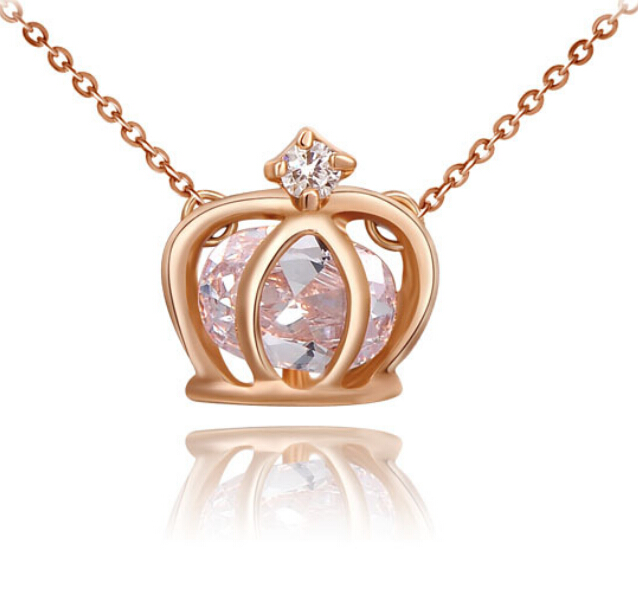 Precioso Dije en baño de oro rosa de 18 quilates, diseño de corona con incrustación de cristales en color blanco.