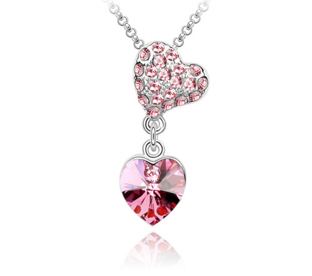 Dije con cadena en baño de oro banco de 18 quilates, diseño de corazón con incrustación de cristales en color rosa. Fabricado en una estructura de aleación de platino con rodio sin níquel 1. joyería Hipoalergénica. 2. Incluye cajita de joyería. 3. Garantía de 30 días por defectos de fabrica.