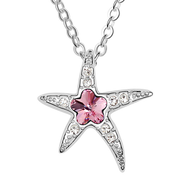 Dije en baño de oro blanco de 18 quilates, diseño de estrella con incrustación de cristales en color blanco y rosa.
