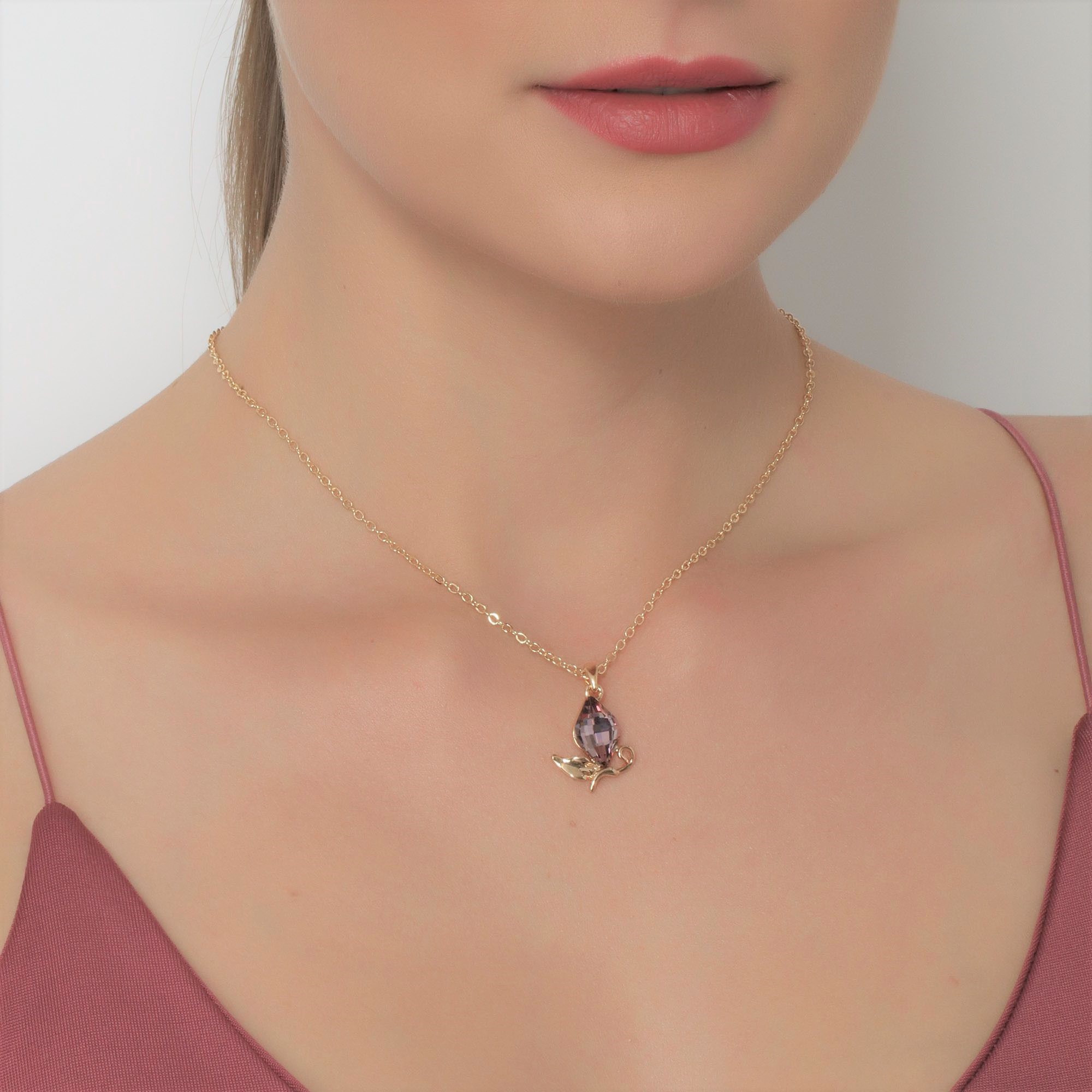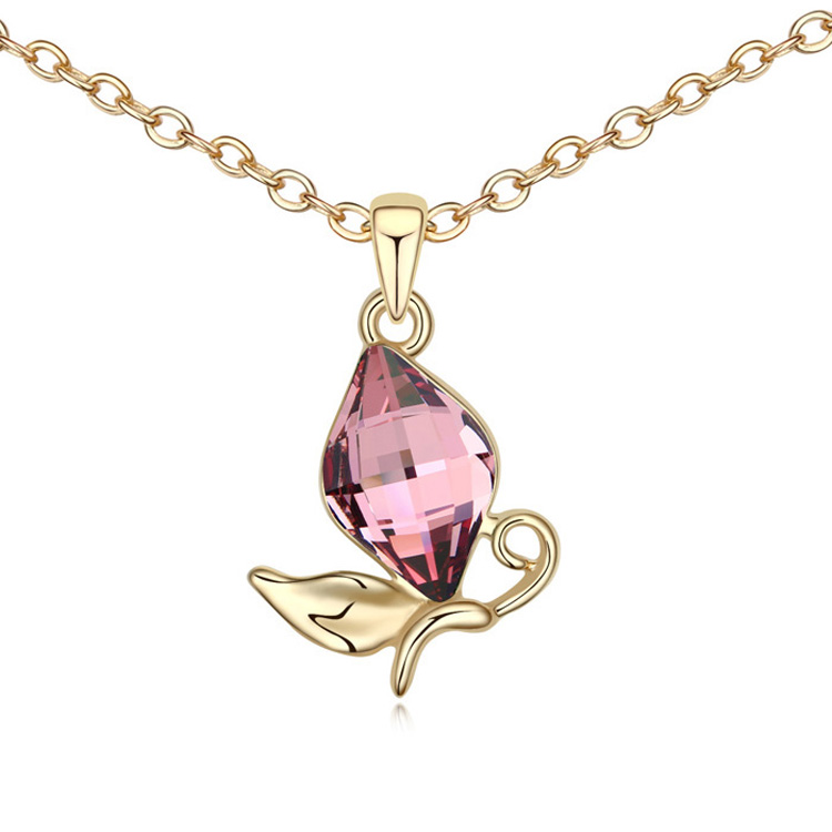Elegante Dije en baño de oro amarillo de 18 quilates, diseño con incrustación de cristales en color rosa. Fabricado en una estructura de aleación de platino con rodio sin níquel. 1. joyería Hipoalergénica. 2. Incluye cajita de joyería. 3. Garantía de 30 días por defectos de fabrica.