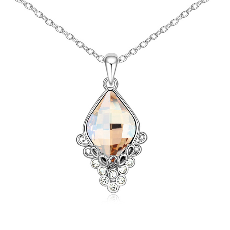 Elegante Dije en baño de oro blanco de 18 quilates, diseño de flor con incrustación de cristales en color blanco y ámbar