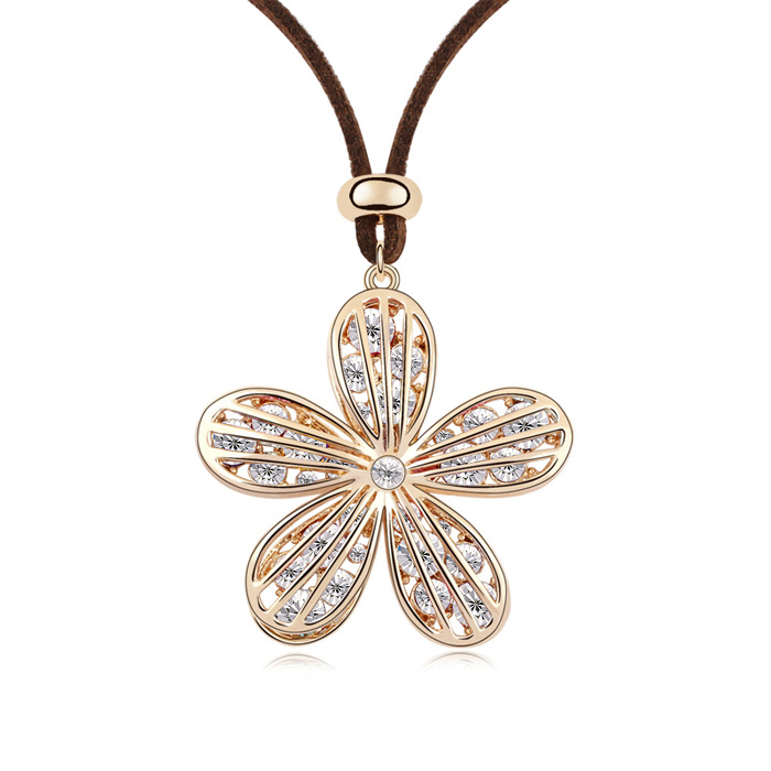 Dije en baño de oro amarillo de 18 quilates, en diseño de flor con incrustaciones de cristales en color blanco.