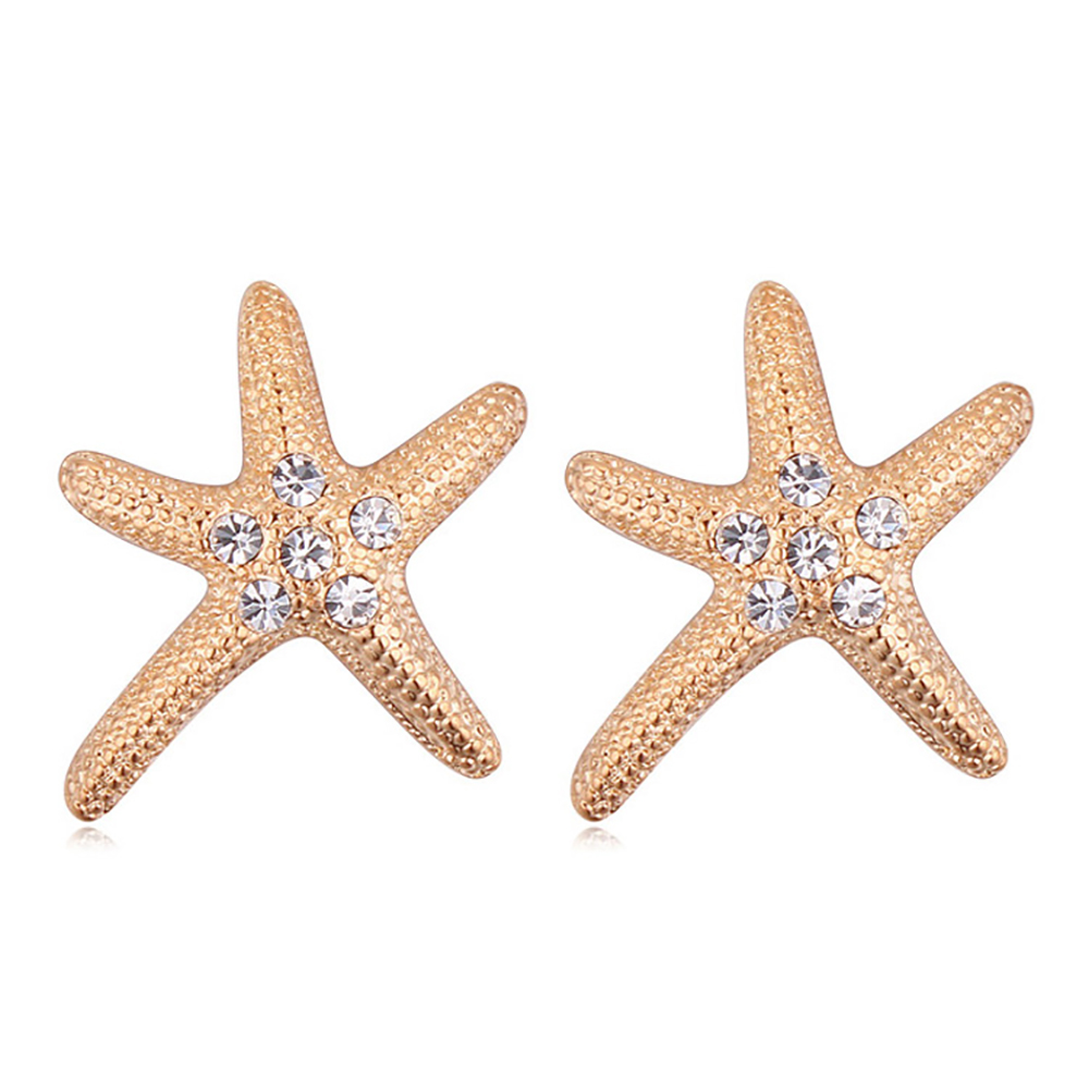 Preciosos aretes, en baño de oro amarillo de 18 quilates, elegante diseño de estrella, con incrustación de cristales en color blanco.