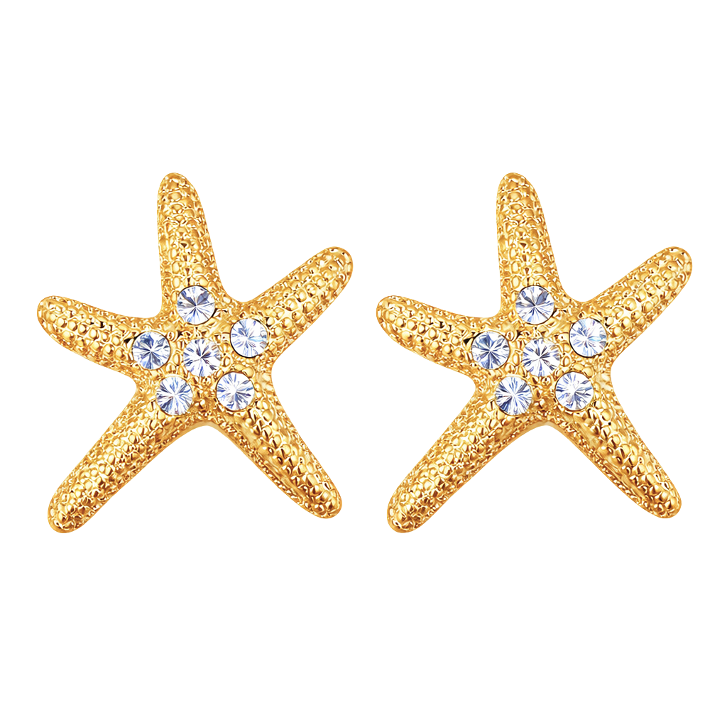 Preciosos aretes, en baño de oro amarillo de 18 quilates, elegante diseño de estrella, con incrustación de cristales en color blanco.