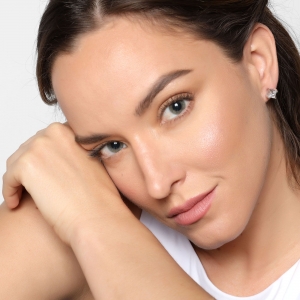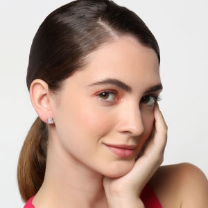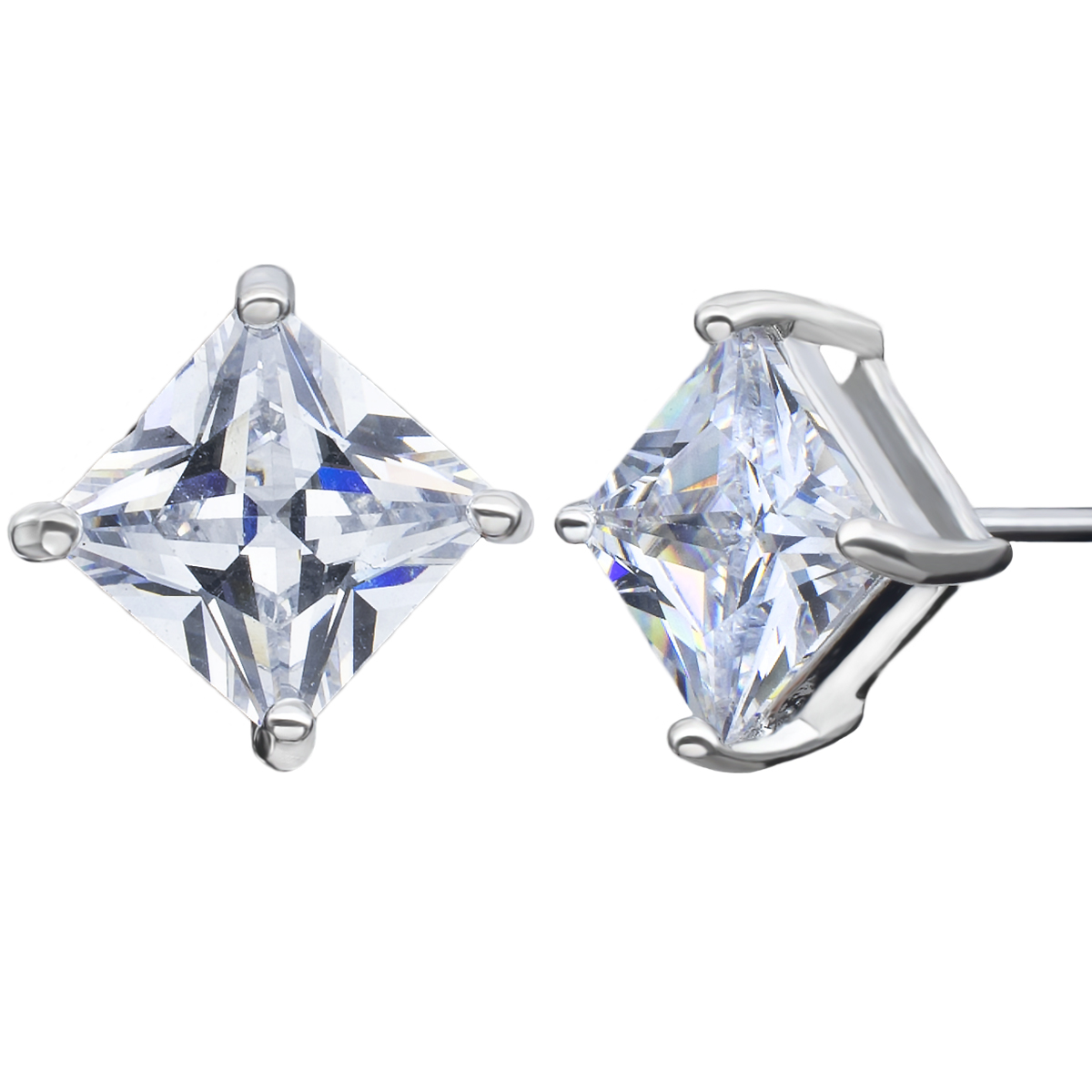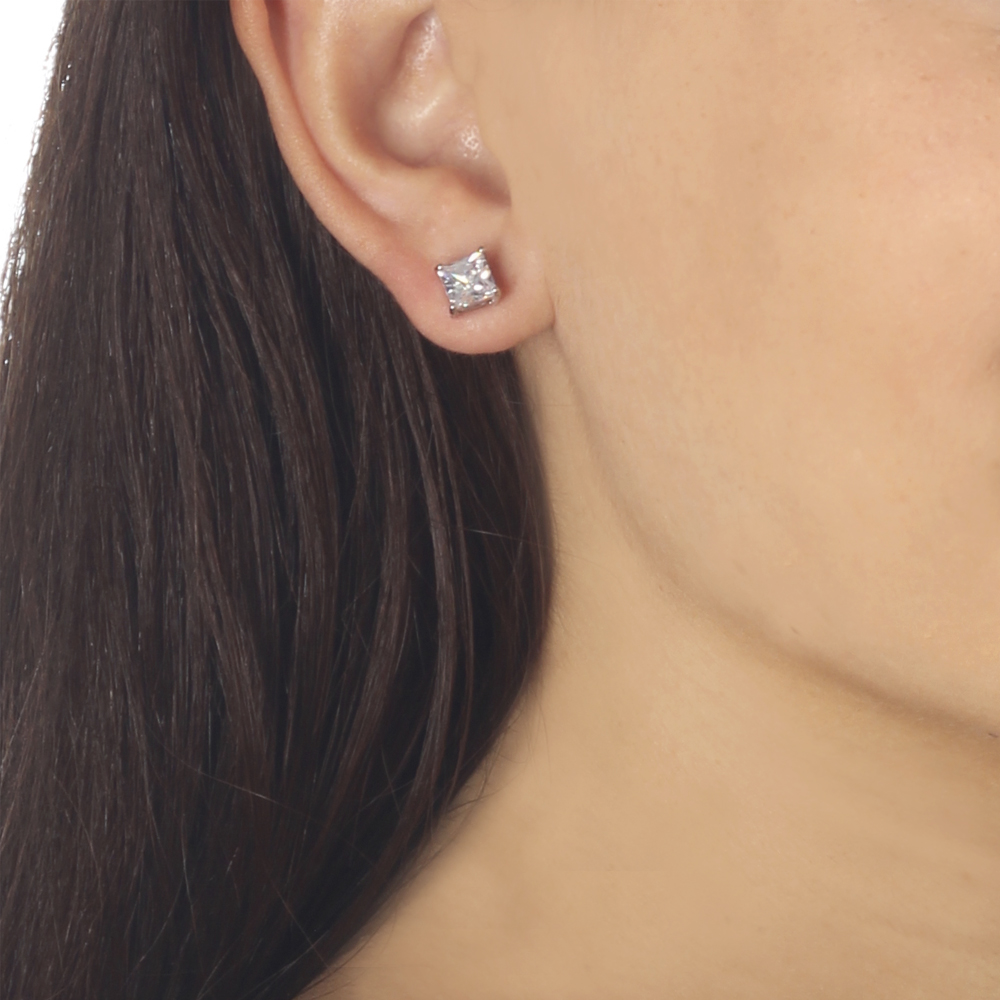 Delicados aretes en Baño de oro blanco de 18 quilates, elegante diseño, con cristal blanco corte princesa.
