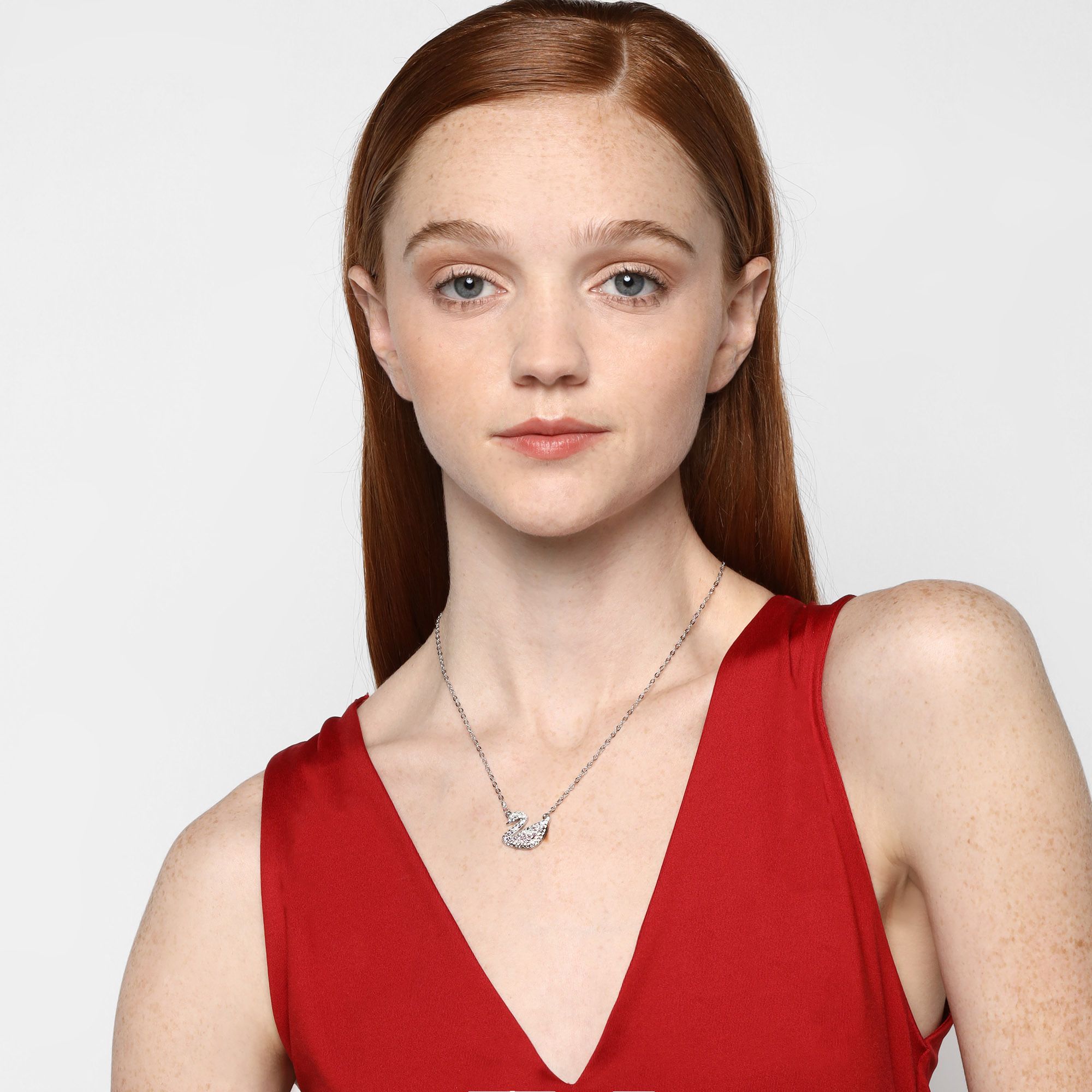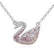 Collar en baño de oro blanco de 18 quilates, diseño de cisne con cristales color rosa y blanco.