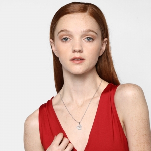 Dije en ba�o de oro blanco de 18 quilates, Hermoso dise�o de coraz�n con incrustaci�n de cristales en color blanco.