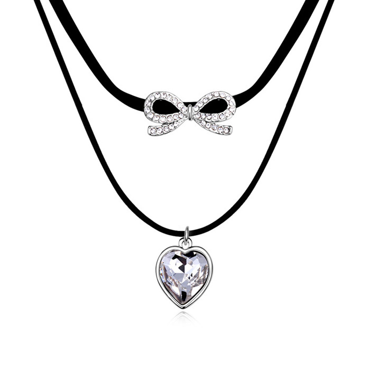 Collar en baño de oro blanco de 18 quilates, diseño de corazón y moño con cuello de hilo reforzado e incrustaciones de cristales blancos.