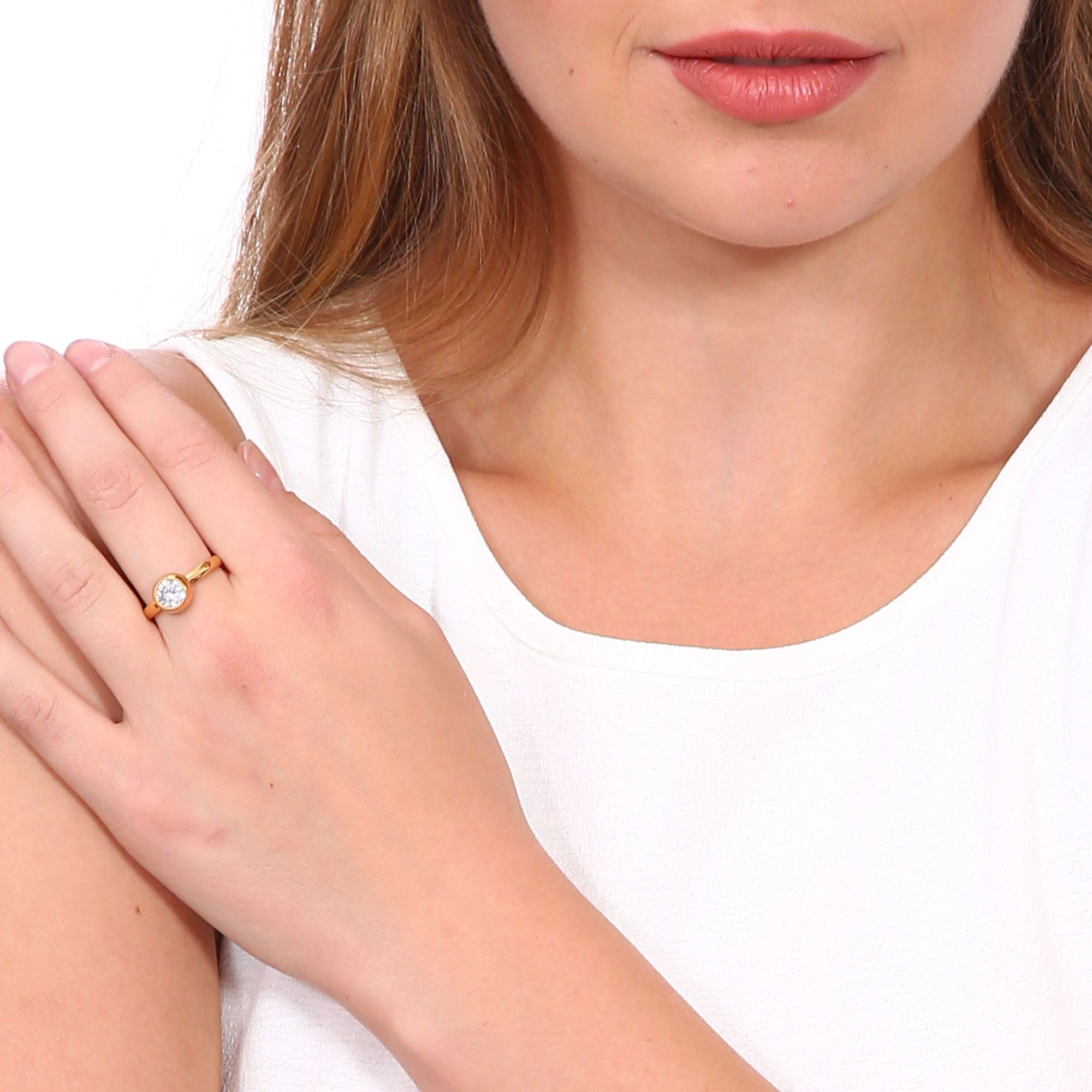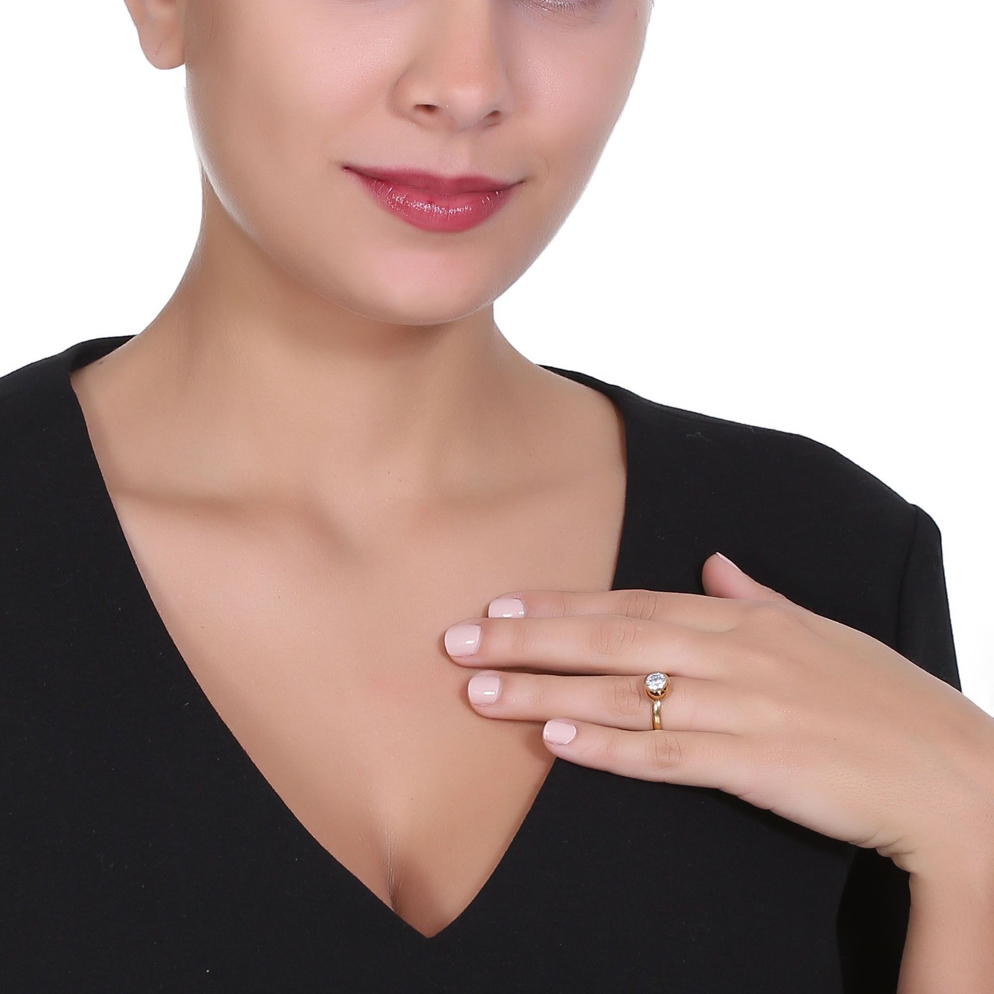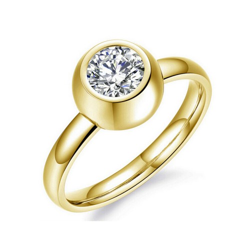 Hermoso anillo en acero inoxidable, fino diseño, con incrustación de cristal en color blanco corte brillante.