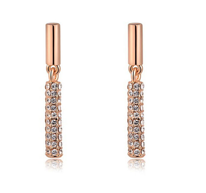 Hermosos aretes, en baño de oro rosa de 18 quilates, fino diseño, con incrustación de cristales en color blanco.