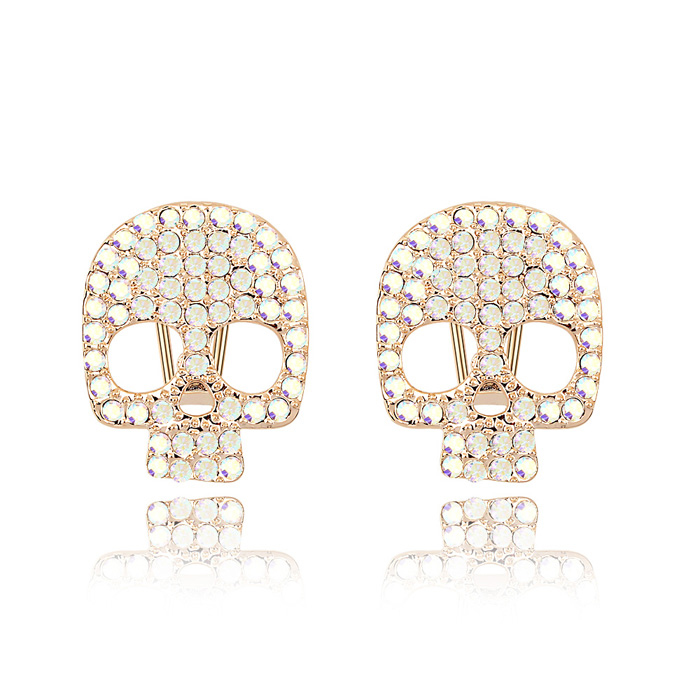 Modernos aretes, en baño de oro blanco de 18 quilates, diseño de calavera, con incrustaciones de cristales color blanco.