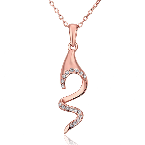 Dije en baño de oro rosa de 18 quilates, diseño de espiral con incrustación de cristales en color blanco. Fabricado en una estructura de aleación de platino con rodio sin níquel. 1. joyería Hipoalergénica. 2. Incluye cajita de joyería. 3. Garantía de 30 días por defectos de fabrica.