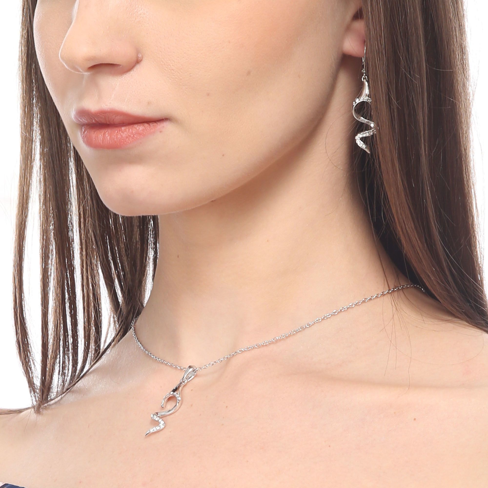 Dije en baño de oro blanco de 18 quilates, diseño de espiral con incrustación de cristales en color blanco. Fabricado en una estructura de aleación de platino con rodio sin níquel. 1. joyería Hipoalergénica. 2. Incluye cajita de joyería. 3. Garantía de 30 días por defectos de fabrica.