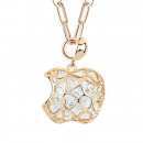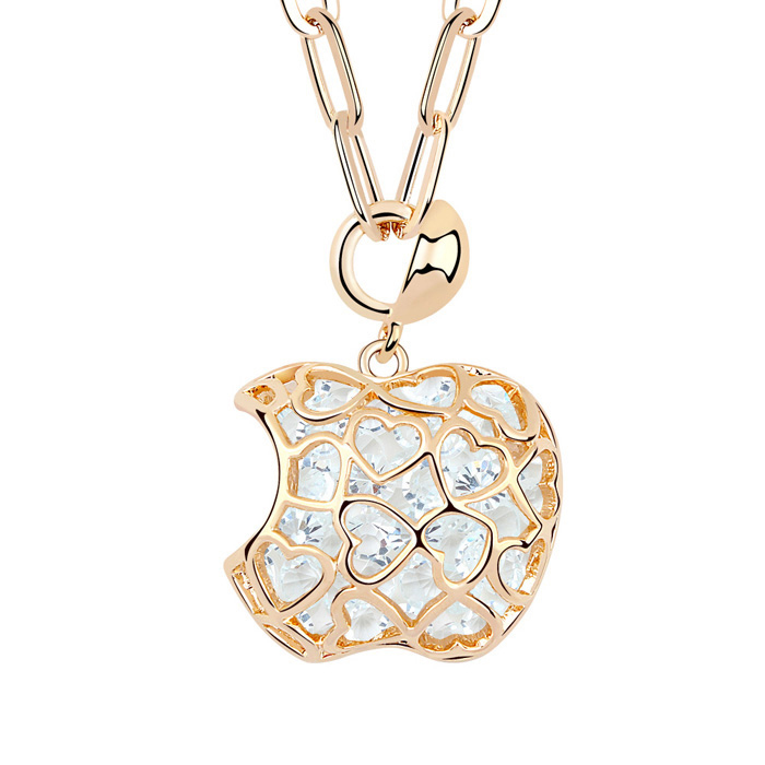 Hermoso Dije en baño de oro amarillo de 18 quilates, diseño de manzana con cristales en color blanco dentro. Cuenta con una cadena de 70 cm, con extención de 5 cm. Fabricado en una estructura de aleación de platino con rodio sin níquel 1. joyería Hipoalergénica. 2. Incluye cajita de joyería. 3. Garantía de 30 días por defectos de fabrica.