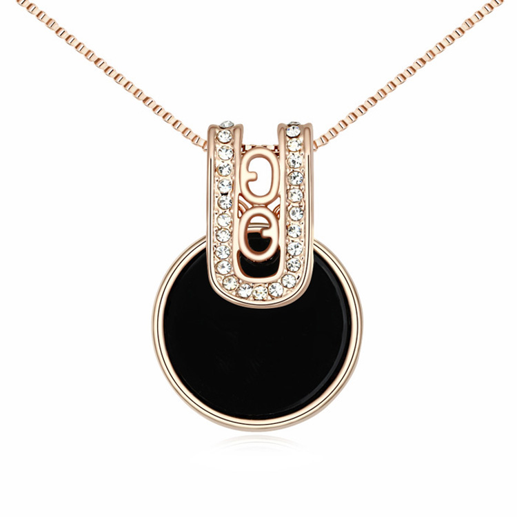 Dije en baño de oro rosa de 18 quilates, Elegante diseño con esmalte negro e incrustación de cristales en color blanco. Fabricado en una estructura de aleación de platino con rodio sin níquel. 1. joyería Hipoalergénica. 2. Incluye cajita de joyería. 3. Garantía de 30 días por defectos de fabrica.