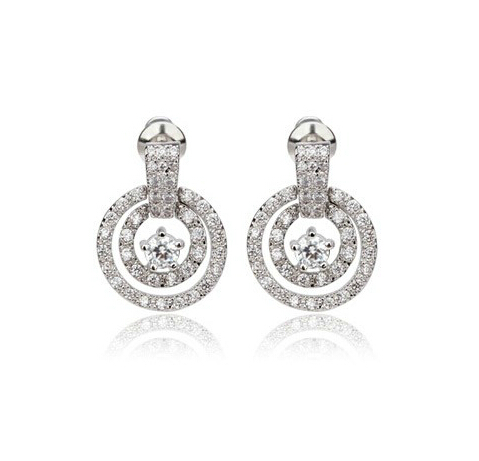 Hermosos aretes, en baño de oro blanco de 18 quilates, diseño de aros, con incrustación de cristales blancos. Fabricado en una estructura de aleación de platino con rodio sin níquel.