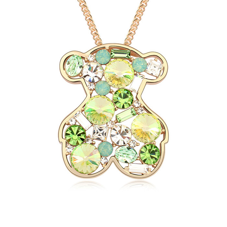 Precioso Collar en baño de oro amarillo de 18 quilates, diseño de oso con incrustación de cristales en color blanco y tonos verdes.