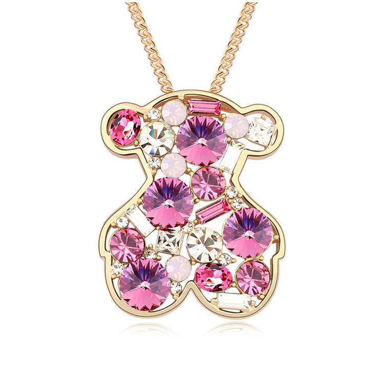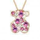 Precioso Collar en baño de oro amarillo de 18 quilates, diseño de oso con incrustación de cristales en color blanco y tonos rosas.